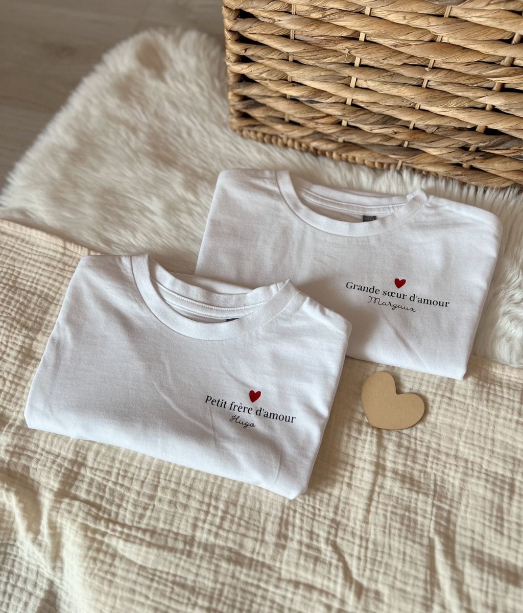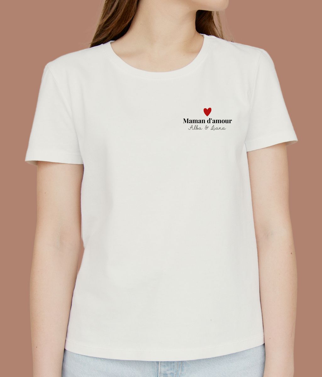 Personalisieren Sie Ihr T-Shirt kostenlos, indem Sie die Farbe des Herzens und die Aufschrift Ihrer Wahl wählen.