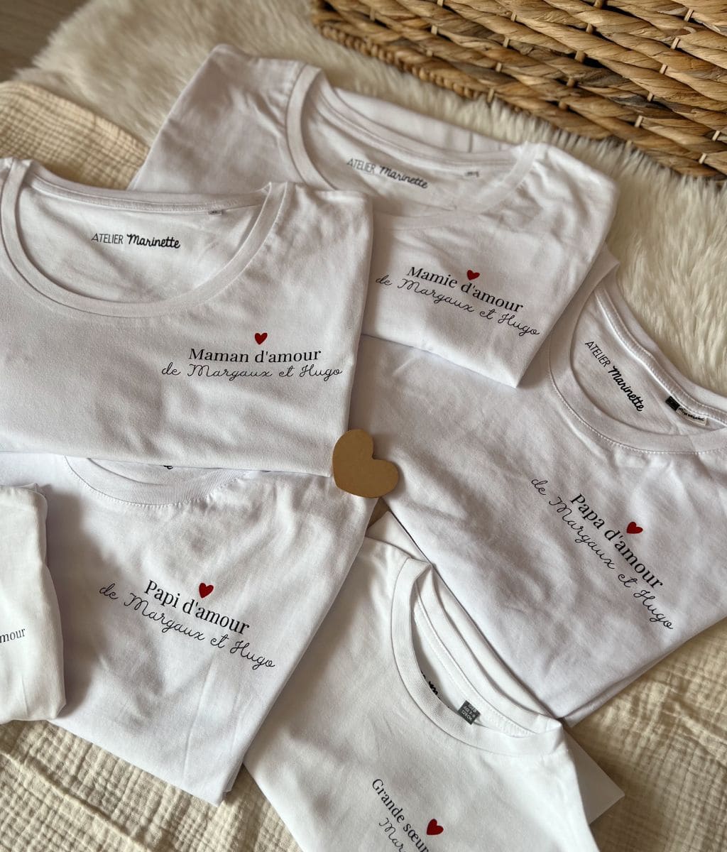 Dieses personalisierte T-Shirt ist ein wunderbares Geschenk für einen Vater, eine Mutter, ein Kind, eine Oma, einen Opa, eine Patin, einen Onkel... für alle Arten von Anlässen: Schwangerschaftsankündigung, Geburt, Geburtstag, Weihnachtsfeiern.