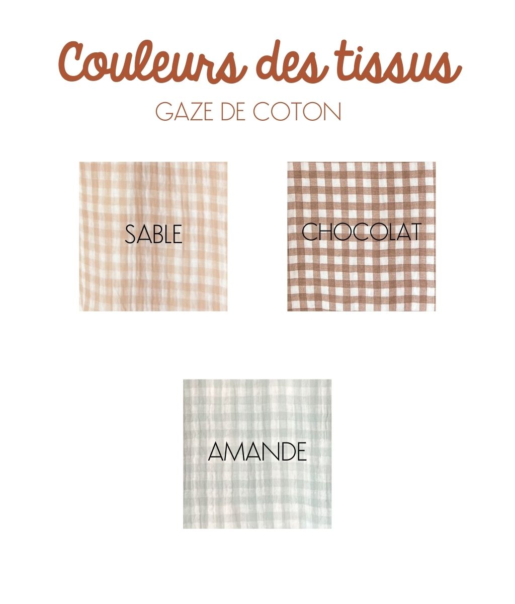 Sein doppelt karierter Baumwollgazestoff ist sehr weich und sehr angenehm anzufassen, OEKO-TEX®-zertifiziert: enthält keine für die Haut des Babys schädlichen Stoffe.