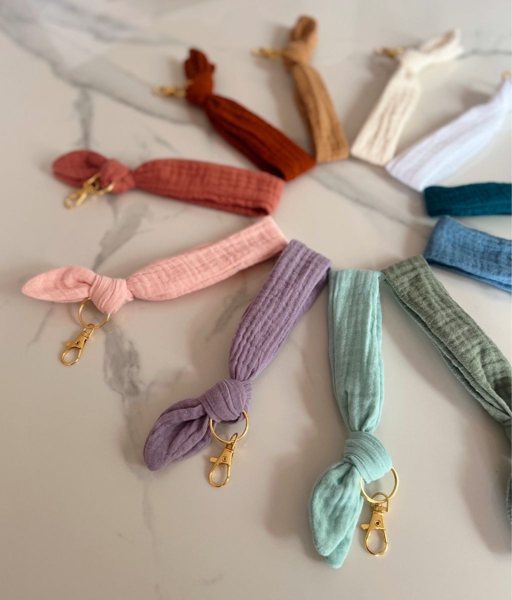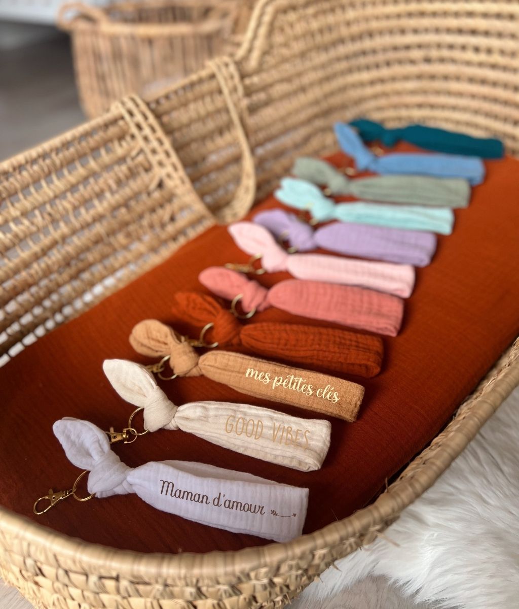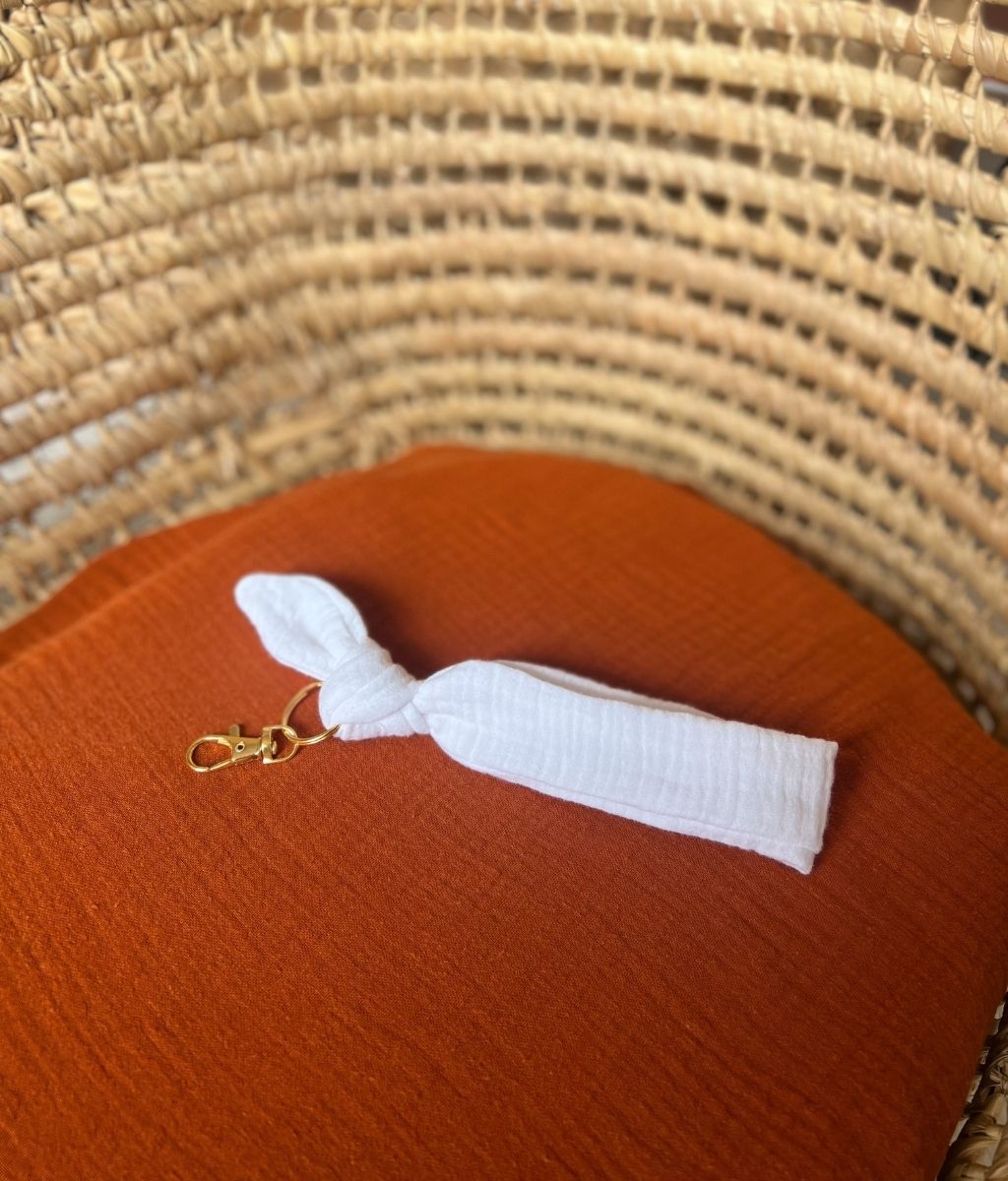 Our “Danaé” key ring in double OEKO-TEX® cotton gauze is the aesthetic and practical accessory to never misplace your house keys.