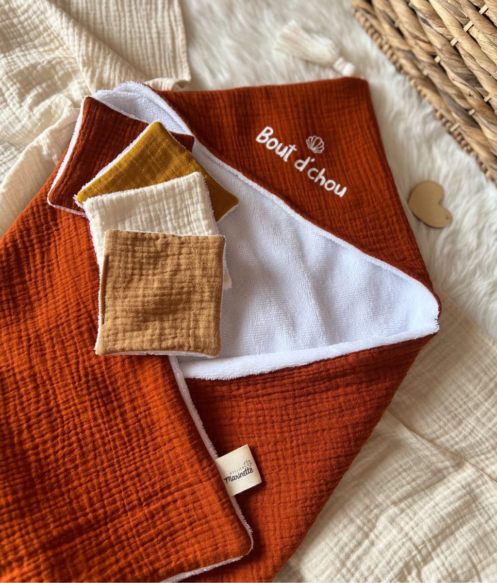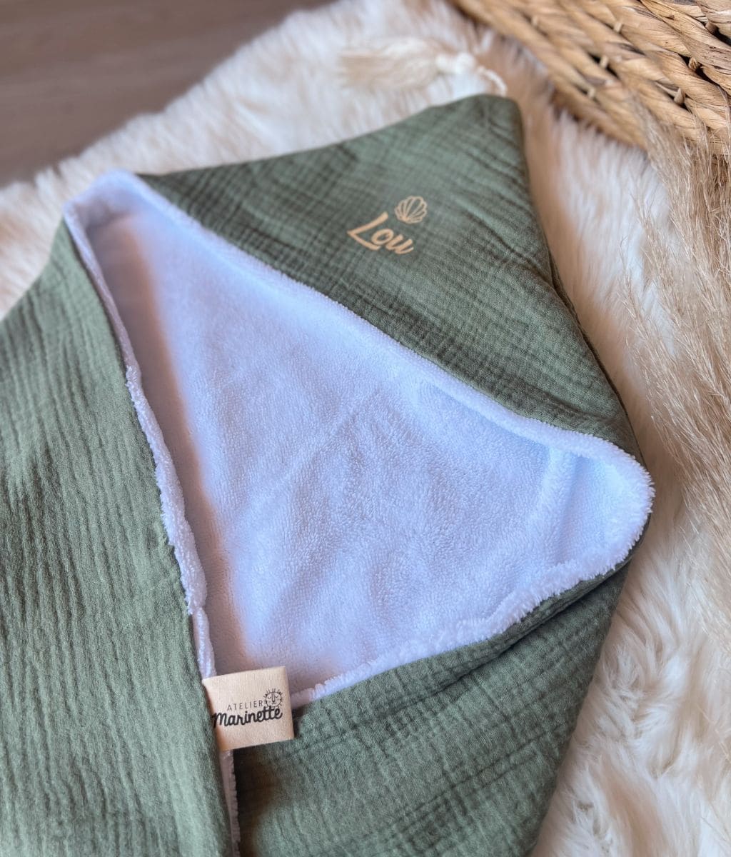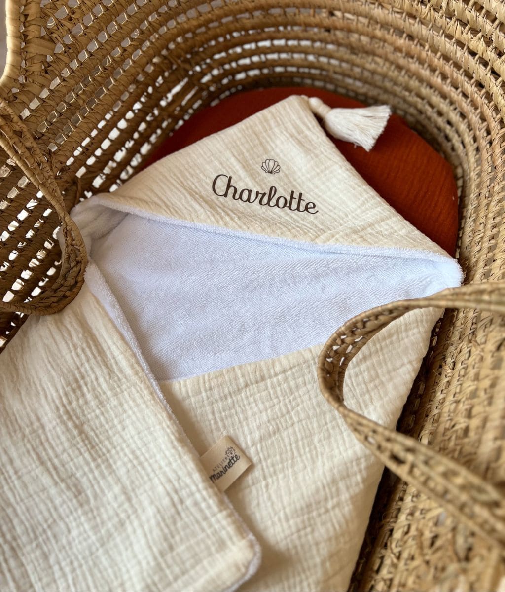 Our "Gabin" towel is perfect for drying your baby after a bath, a swim, or a day at the beach. Available in various colors, you can customize it with the baby's name or a sweet message.