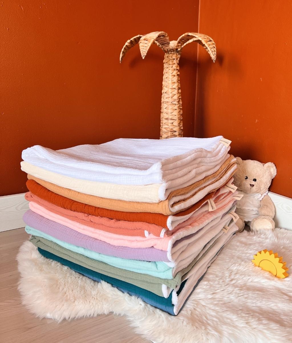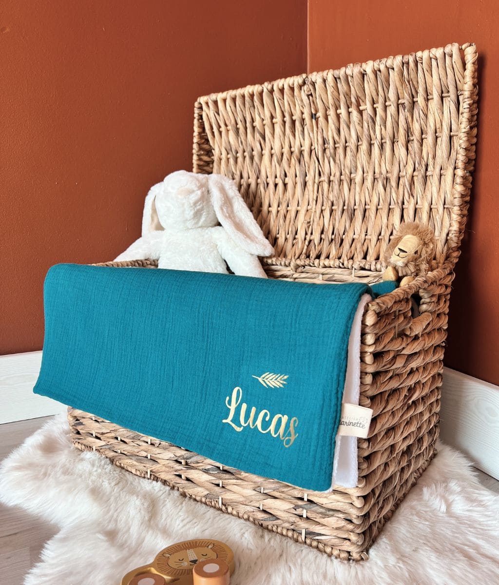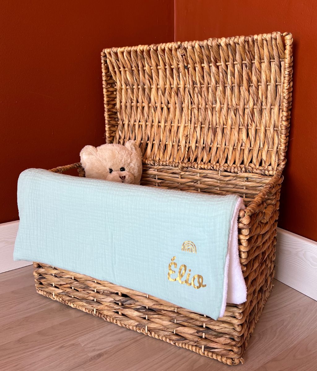 Our cotton gauze and cozy fleece blanket can be personalized with a sweet little note or baby's first name. A great idea for a gift made in France for babies to offer in all circumstances: birth, birthday, religious celebration, baby shower…