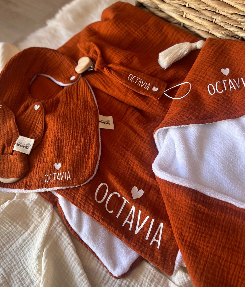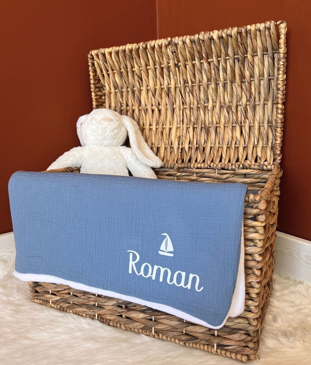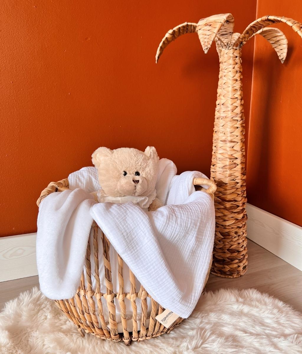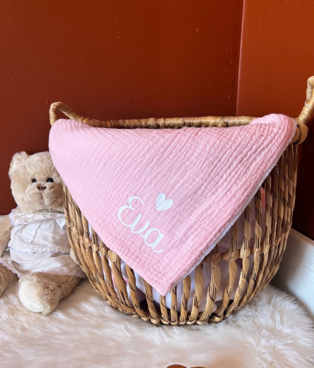 Our cotton gauze and cozy fleece blanket can be personalized with a sweet little note or baby's first name. A great idea for a gift made in France for babies to offer in all circumstances: birth, birthday, religious celebration, baby shower…