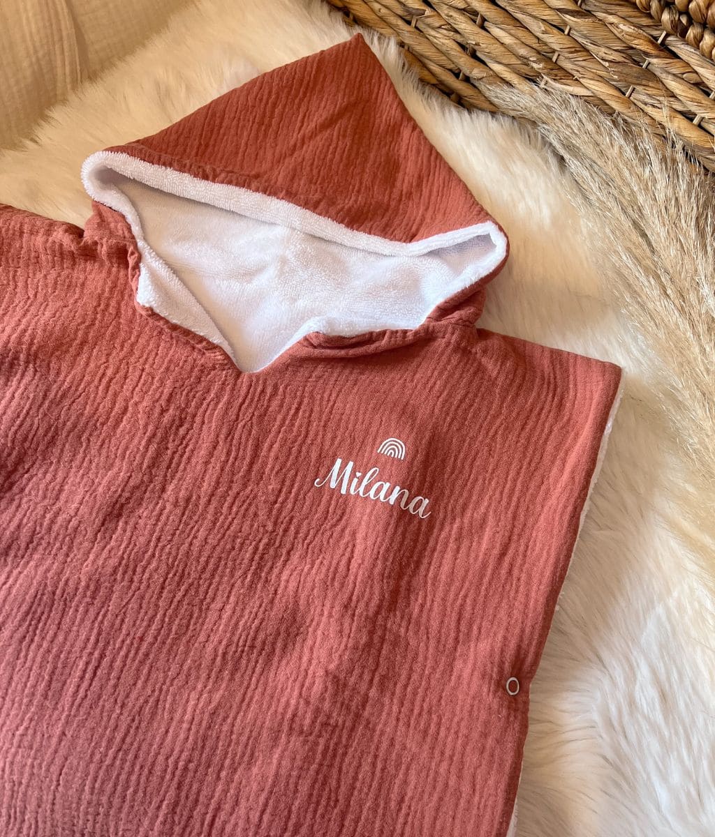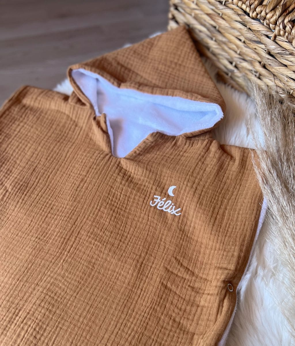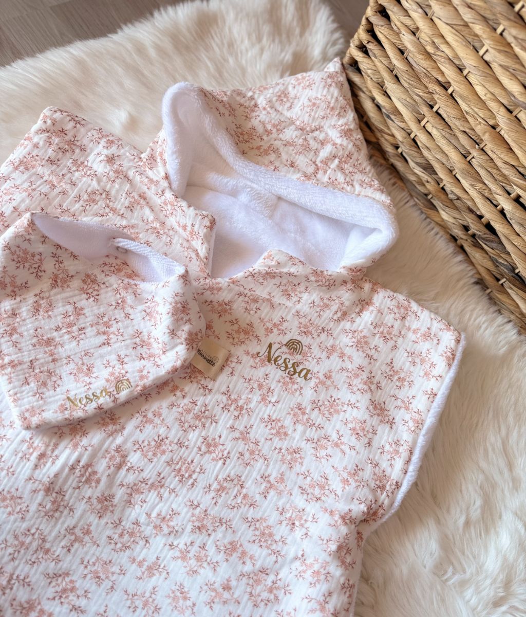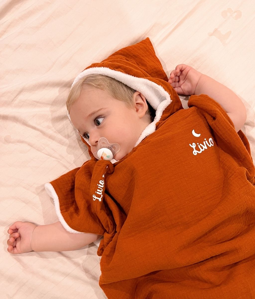 This bathrobe is an original and customizable gift to offer during a special event: birth, religious celebration, birthday, end-of-year celebrations, etc. You can choose to add the baby's first name or a sweet little word as well as 'a pretty symbol that represents your child.