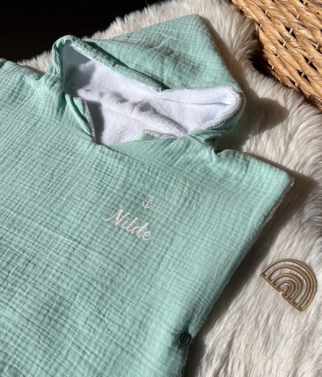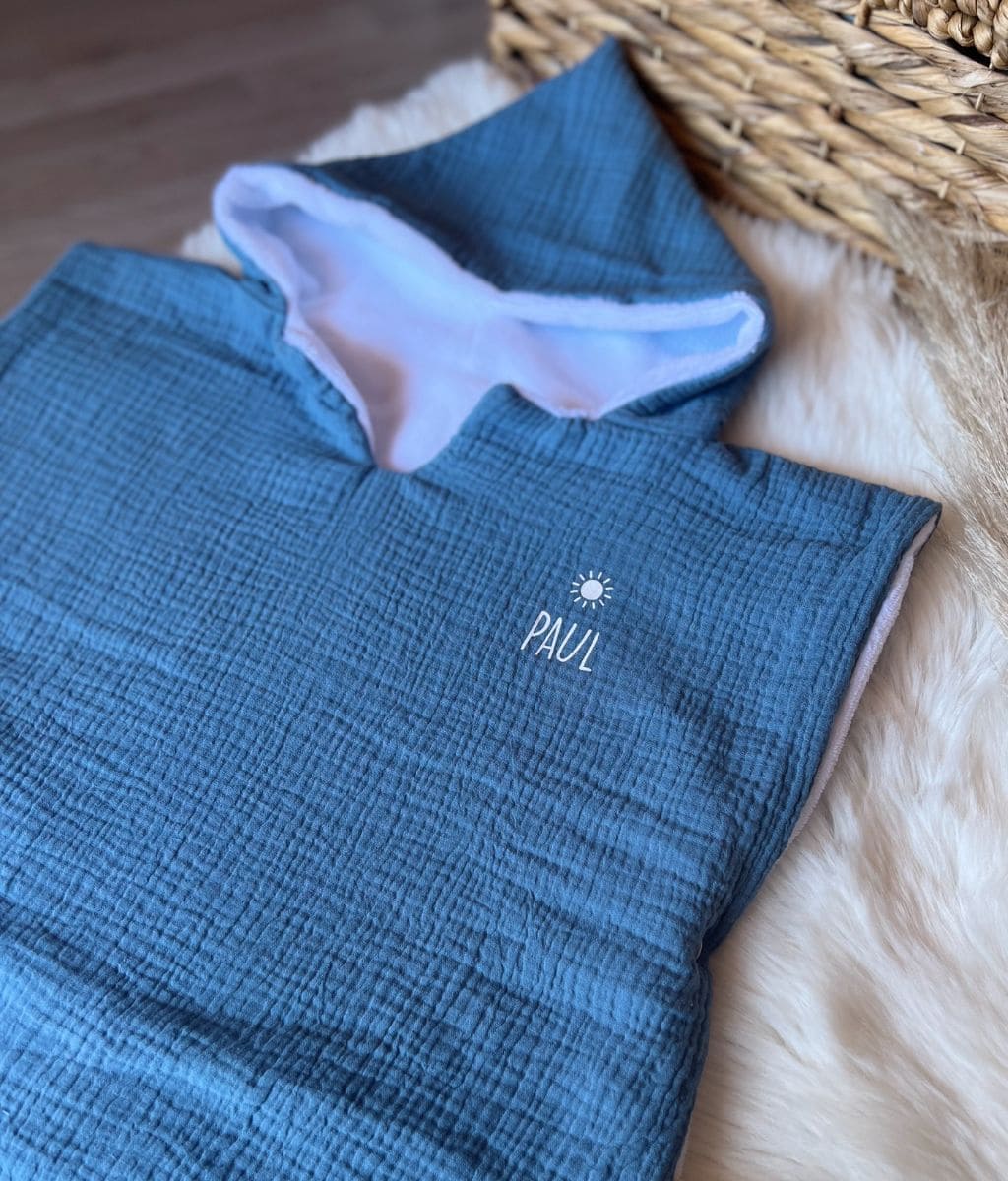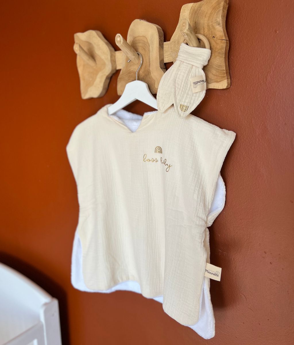 This bathing poncho is made by us in the South of France. Its creation represents more than three hours of work to create a perfect bathing poncho. Its bamboo sponge is up to 4 times more absorbent than a classic cotton sponge. Perfect for wiping baby quickly and gently!
