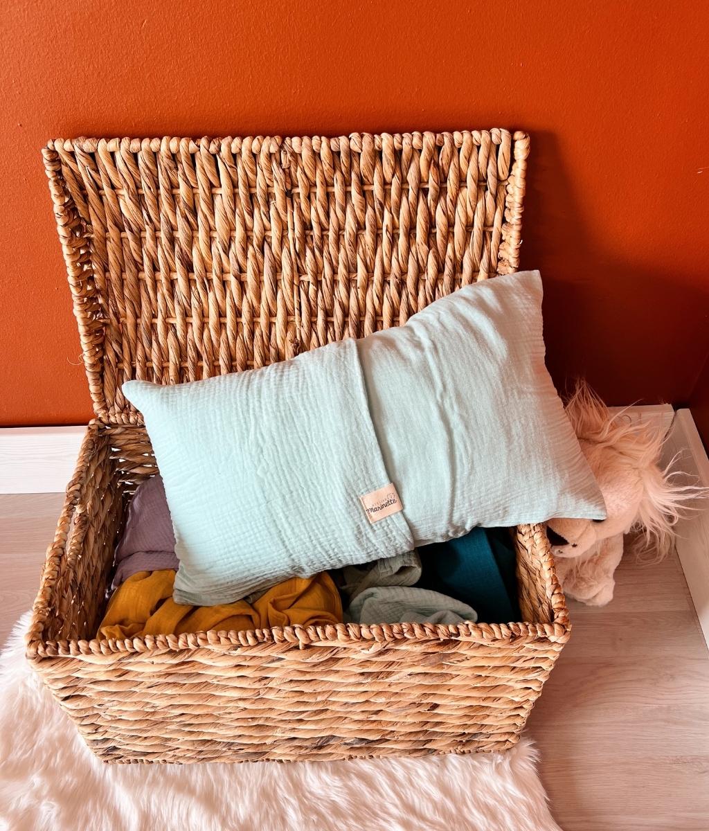 Made in our workshops in the south of France, this cushion cover is made from OEKO-TEX® cotton gauze; a light and very soft fabric that respects babies' skin since it does not contain toxic substances.