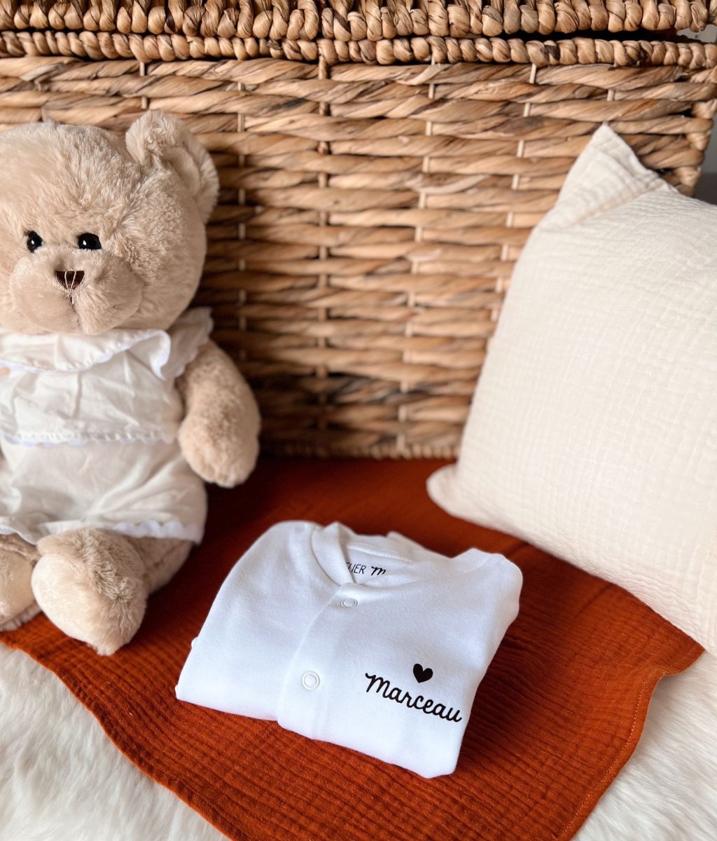 Notre pyjama grenouillère “Alba” est un cadeau idéal pour tous types d’occasions et de moments heureux : naissance, baptême, fêtes religieuses, anniversaire, baby shower… Offrez un cadeau original en personnalisant ce pyjama avec un prénom ou un petit mot doux et un motif au choix.