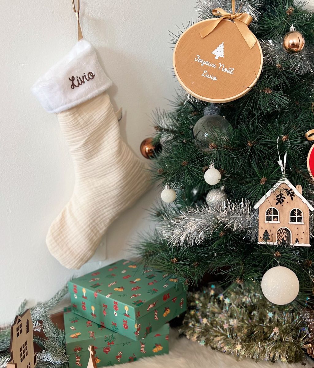 Cette Chaussette de Noël personnalisée est une belle décoration pour les fêtes de Noël. Pour les enfants les plus sages, vous pourrez glisser des petits cadeaux et gourmandises à l’intérieur.