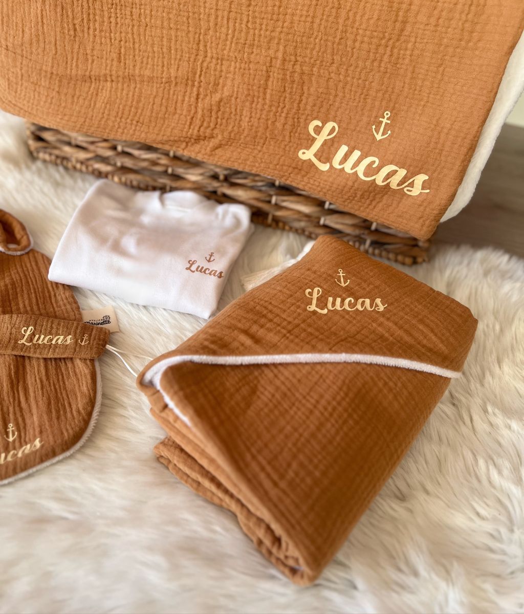 Personnalisez gratuitement chaque accessoire avec le prénom de bébé, un mot doux, un motif... c'est toujours une très belle surprise pour les parents de découvrir le prénom de leur enfant à l'ouverture du coffret.