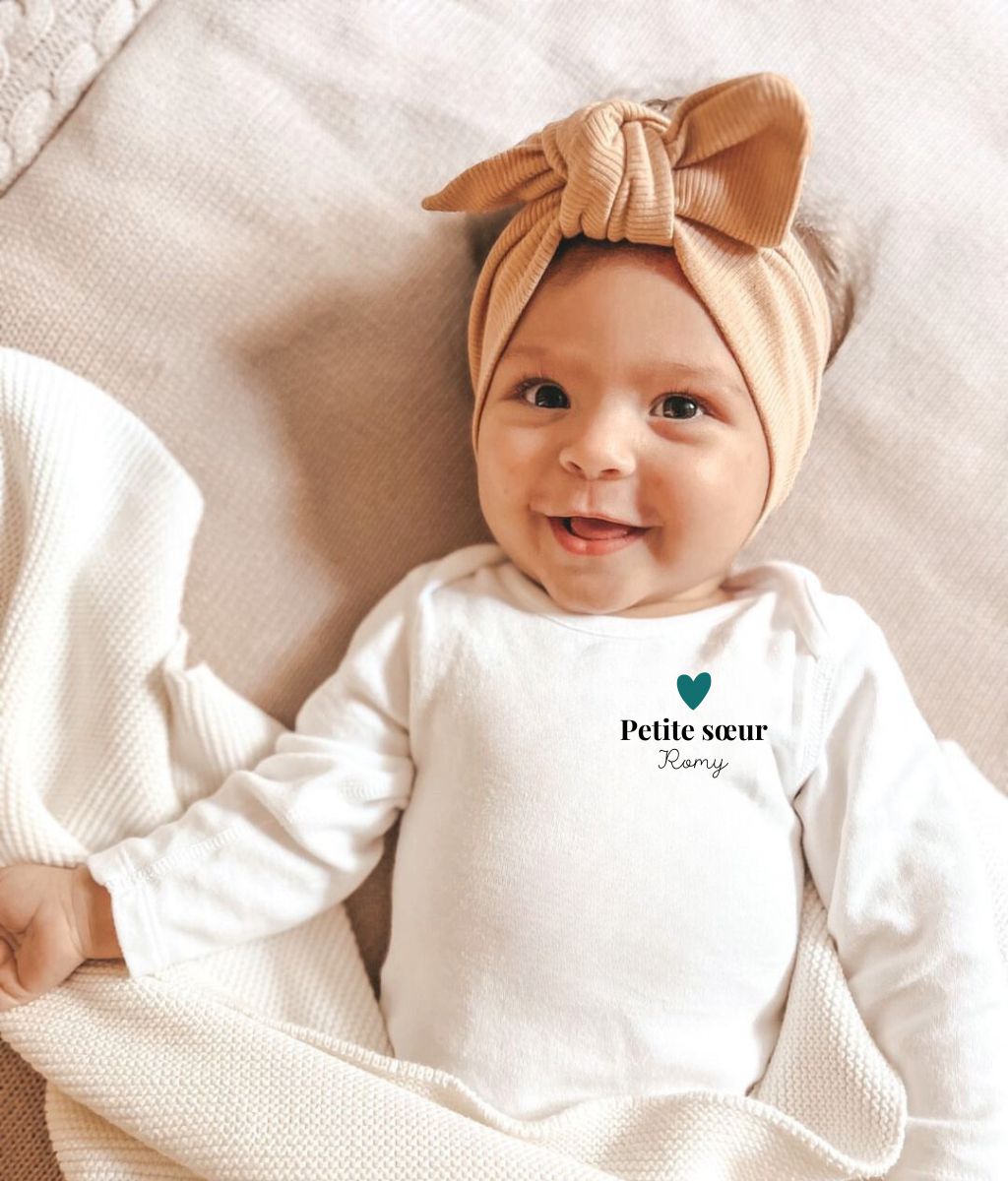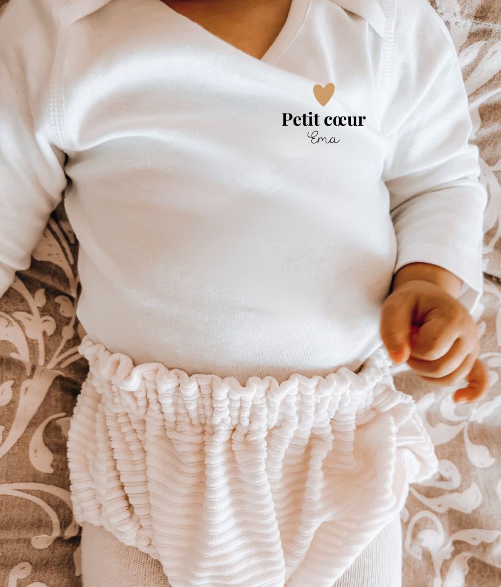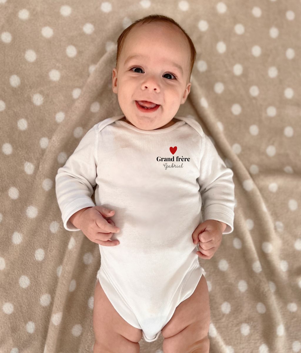 Personnalisez gratuitement ce body en choisissant la couleur du cœur et sa petite inscription.
